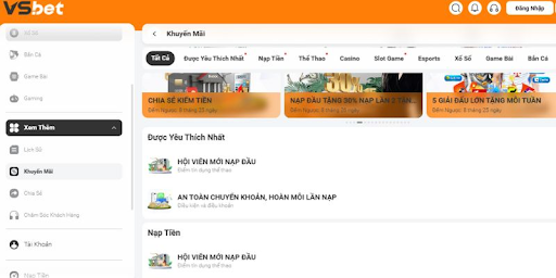 Khi Nạp Tiền vsbet lần đầu, người chơi sẽ nhận được phần thưởng gấp đôi giá trị nạp, giúp tăng đáng kể số dư ban đầu. Vốn cược lớn ngay từ đầu cho phép bạn thoải mái tham gia các trò chơi yêu thích như thể thao, casino hay slot. Càng nhiều vốn, khả năng quản lý cược và rủi ro càng tốt, giúp bạn chơi lâu dài mà không lo thiếu tiền. Nhờ vậy, cơ hội thắng, nhận thưởng và rút tiền cao hơn ngay từ lần chơi đầu tiên.